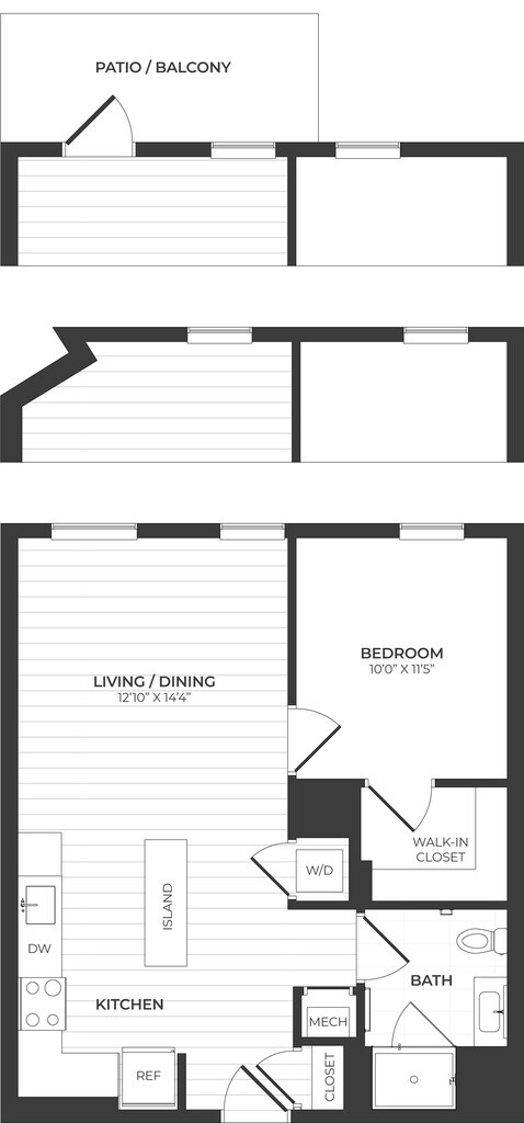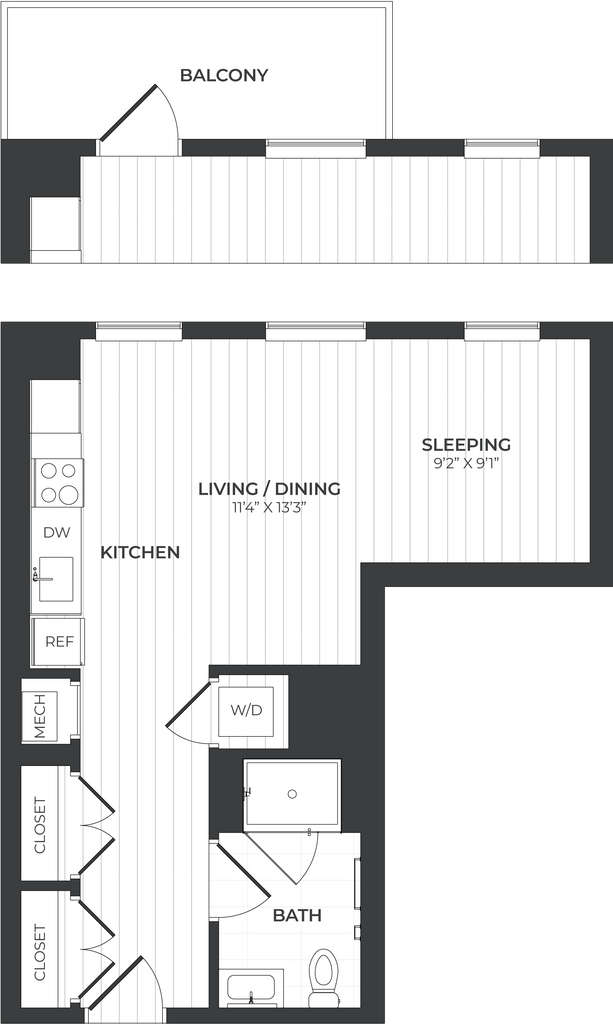 Studio-S2-Stone - Floorplan 1 1 Bedroom