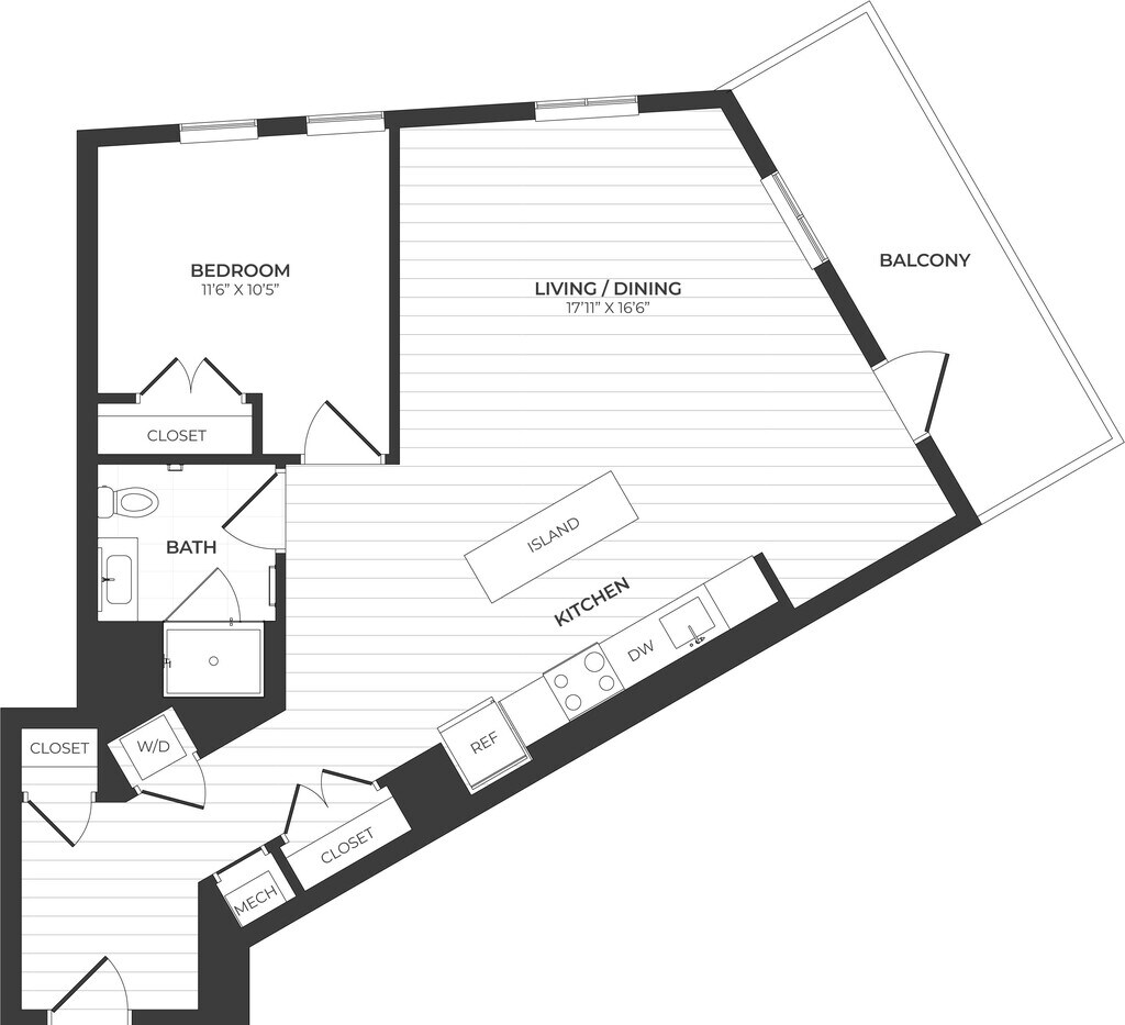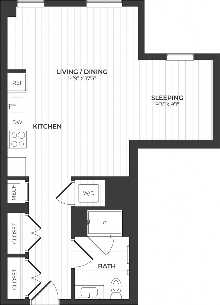 Studio, 1 Bath, 663 sq ftLargest StudioThis is the largest Studio at this PropertyModel Gallery