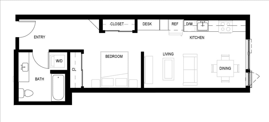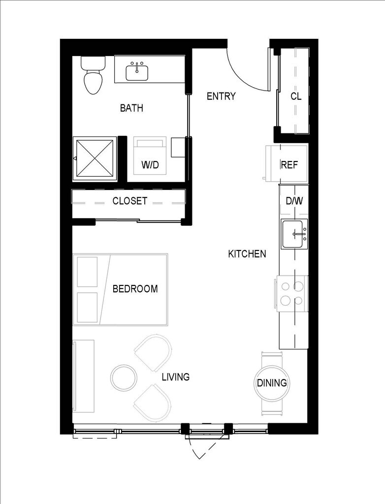 Apartment Model: S - S1K-A$2,036Studio, 1 Bath, 544 sq ftAvailable NowFloor plans are artist's rendering. All dimensions are approximate. Actual product and specifications may vary in dimension or detail. Not all features are available in every rental home. Prices and availability are subject to change. Base rent is based on monthly frequency. Additional fees may apply, such as but not limited to package delivery, trash, water, amenities, etc. Deposits vary. Please see a representative for details.