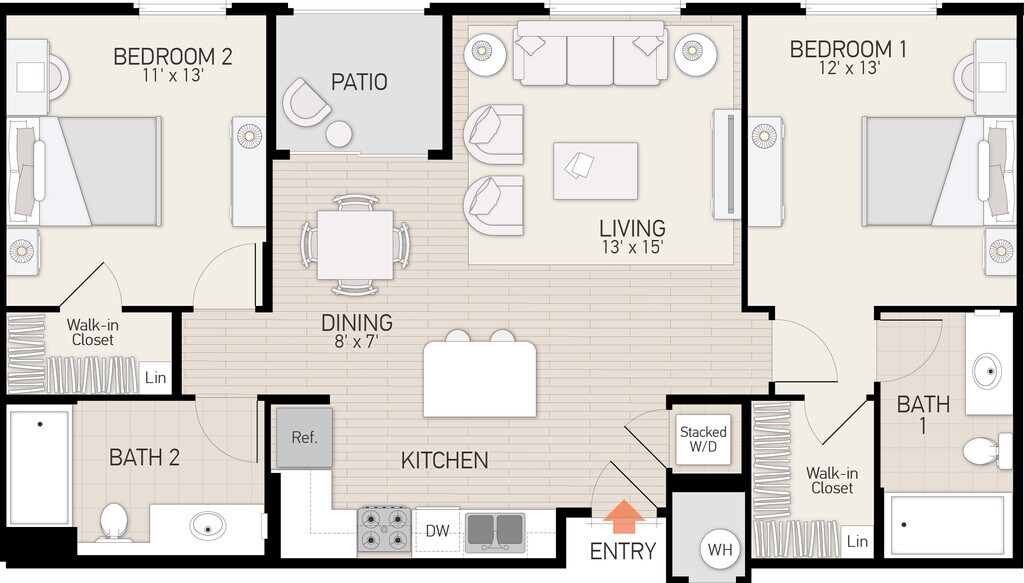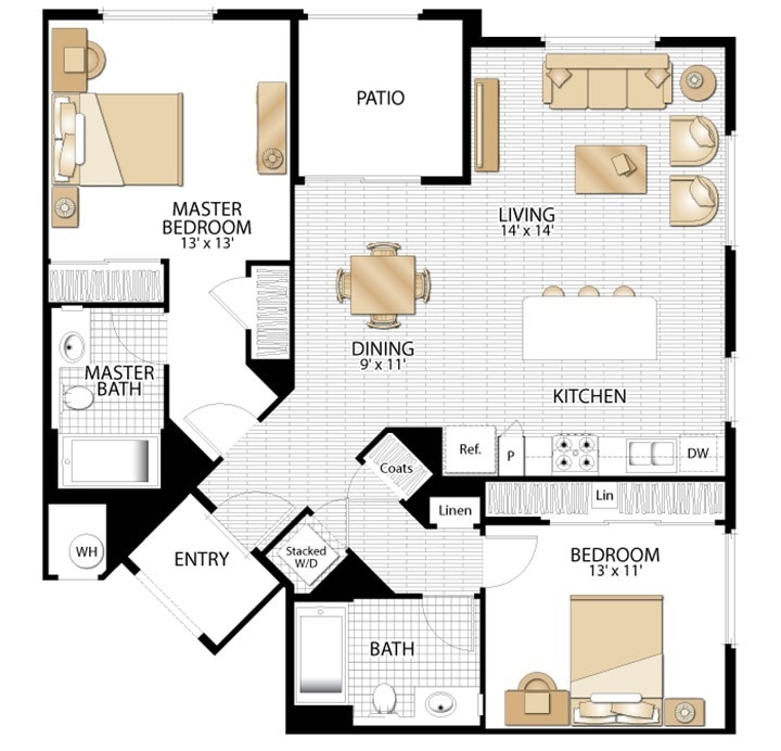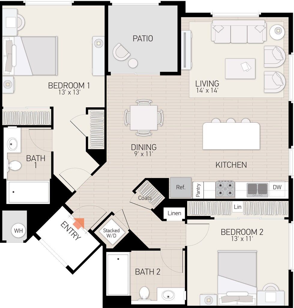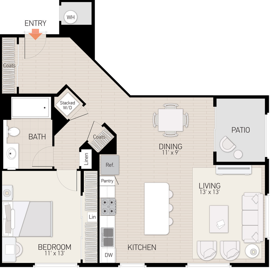 1 Bed, 1 Bath, 851 sq ftAvailable NowModel Gallery