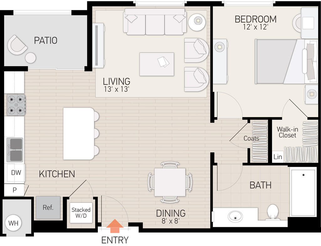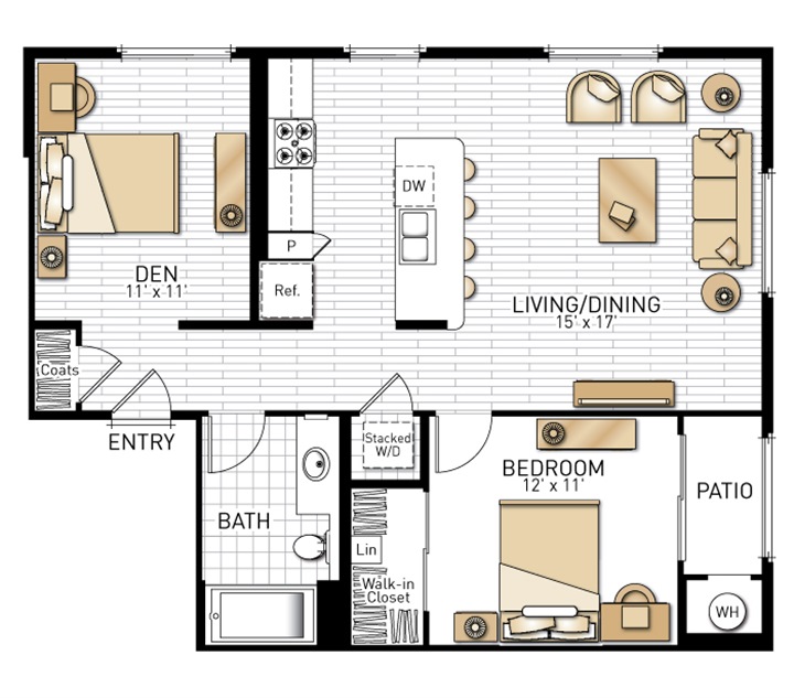 Studio, 1 Bath, 725 sq ftAvailable NowModel Gallery