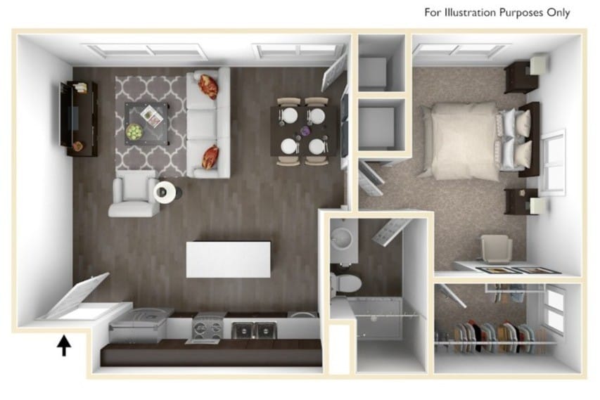 1 Bed, 1 Bath, 727 sq ftAvailable NowModel Gallery