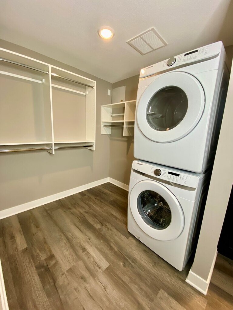 Coming home never felt so good. The Vesey 5 is the largest one-bedroom apartment Centlivre has to offer! Walk inside and be welcomed by a well-appointed kitchen with tile backsplash and a large extended pantry alongside the stainless-steel refrigerator. As the floorplan opens into the living space, you will be happy to see extra shelving for a coat closet. Perfect for apartment living! This one-bedroom apartment entails a large walk-in closet connected to the bathroom, with a full-sized stacked washer and dryer. Give Centlivre a call today for more information.