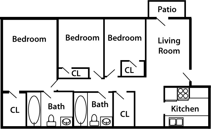 Apartment Model: Three Bedroom3 Bedroom, 2 Bath, 1200-1347 sq ftUnavailable![]()