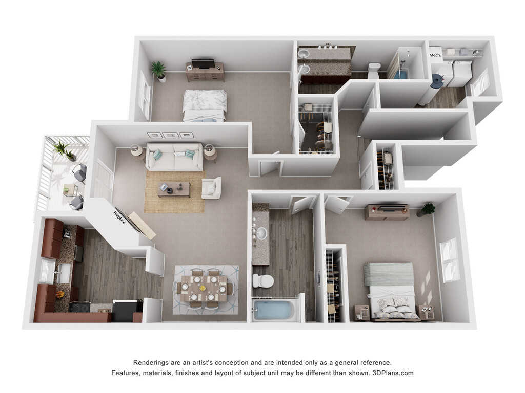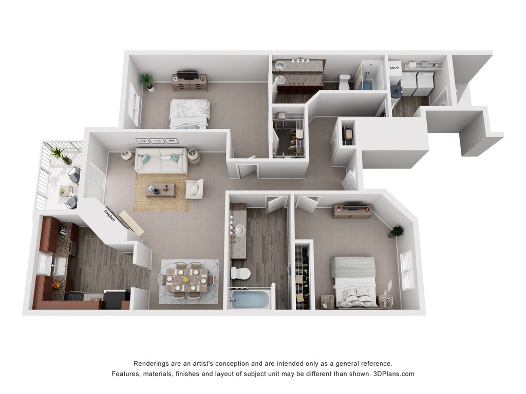 2 Beds, 2 Baths, 1378 sq ftModel Gallery