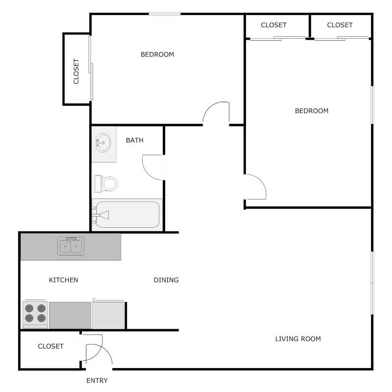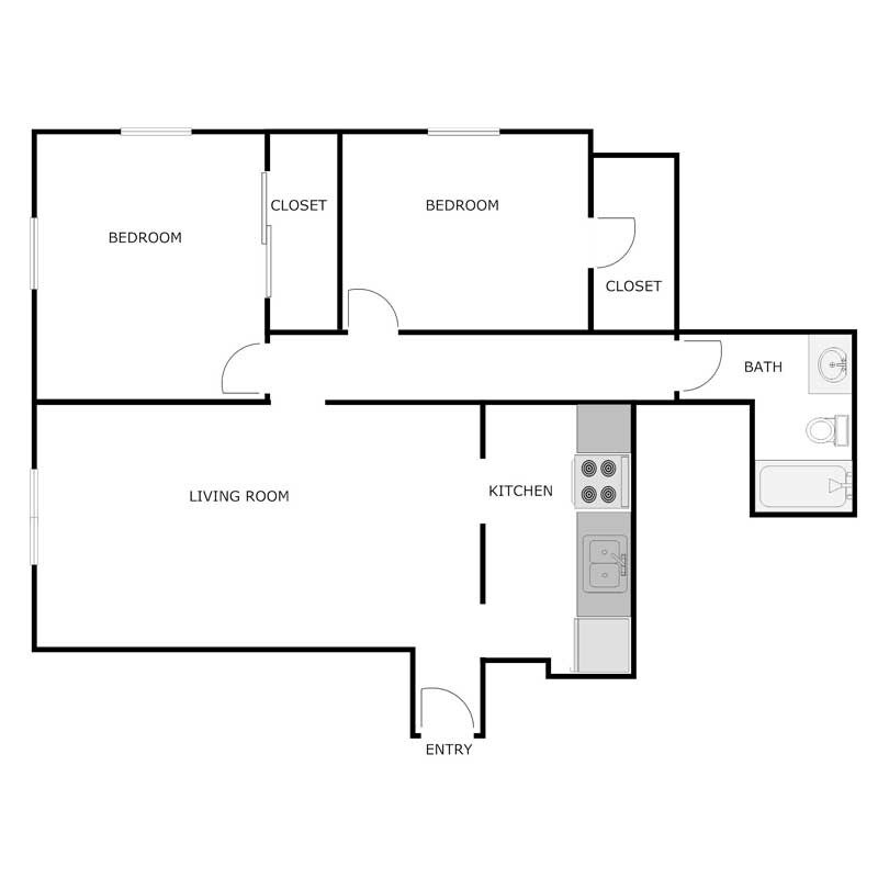 Two Bed 1 Bath F - Floorplan 1 Two Bed 1 Bath A