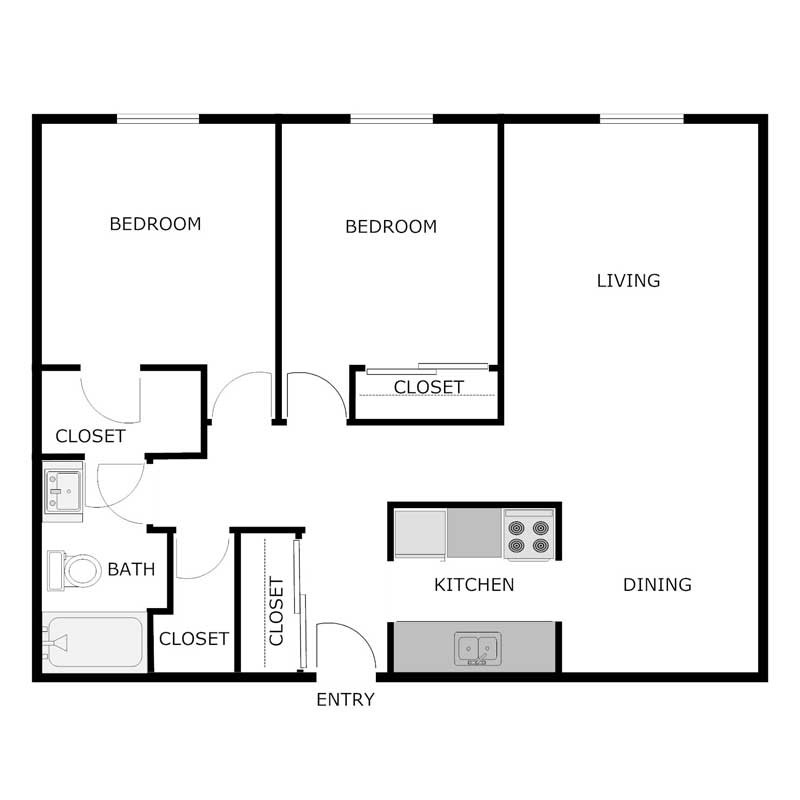 Two Bed 1 Bath C - Floorplan 1 Two Bed 1 Bath E