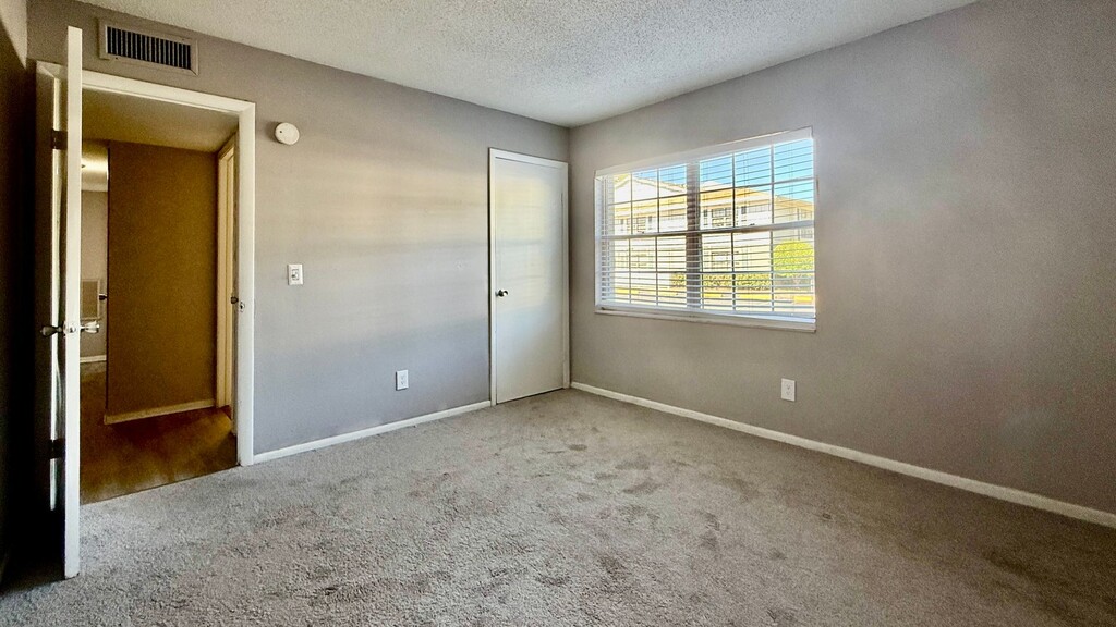 Our classic 2-bedroom apartments feature generous layouts perfect for comfortable living. Each apartment includes two large bedrooms, ample closet space, and bathrooms with additional storage. Classic finishes include white appliances and carpeted living areas, perfect for those who love a traditional feel. With plenty of natural light and scenic views of our green surroundings, you’ll love coming home to Central Park at East Bay. Community amenities include a pool, fitness center, playground, laundry rooms, and a dog park for your furry companions.