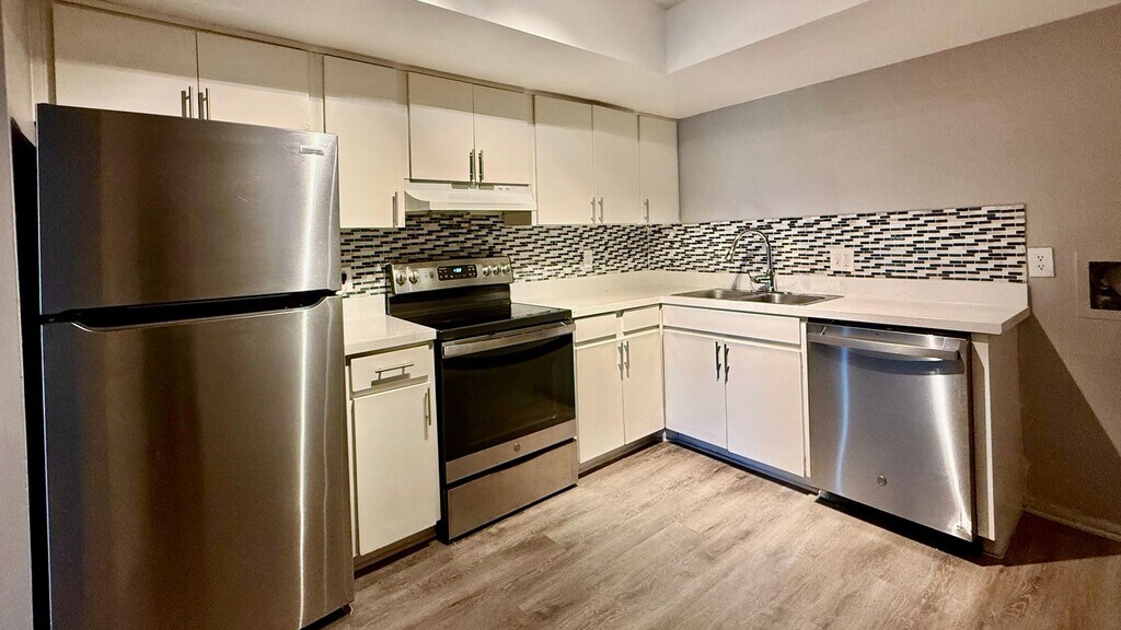 Our partially renovated 2-bedroom apartments offer extra space and upgraded style. These homes include two spacious bedrooms, two full bathrooms with additional closet storage, and select units featuring in-home washers and dryers. Modern finishes such as stainless steel appliances, updated backsplash, and vinyl flooring in most living areas add a fresh touch, while large windows fill your home with natural light. Enjoy the relaxed, park-like setting of Central Park at East Bay, complete with a pool, fitness center, playground, laundry room, and dog park.