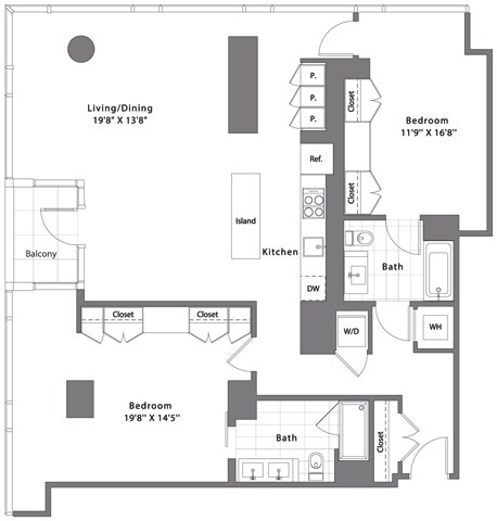 Apartment Model: 1 Bed - 1 Bath | A04From $2,7901 Bedroom, 1 Bath, 692-695 sq ftAvailable Now![]()