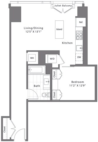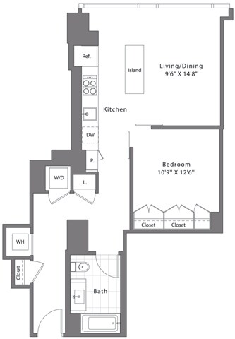 1 Bed - 1 Bath | A03 - Floorplan 2 ![]()
