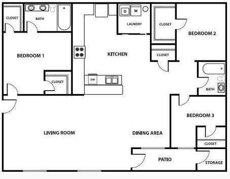 2x2 - Floorplan 1 3 Bedrooms