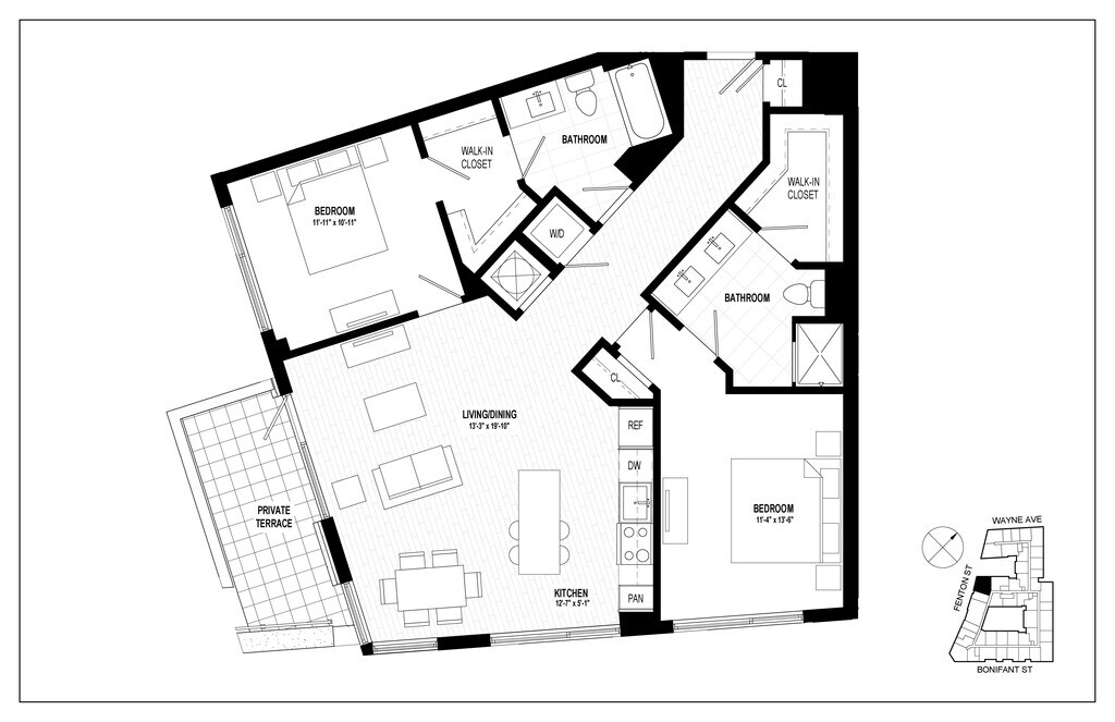 Apartment Model: 1 Bed 1 Bath A04From $2,0271 Bedroom, 1 Bath, 646 sq ftAvailable Now![]()
