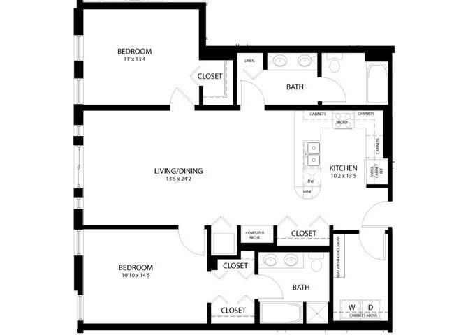 1 Bed, 1 Bath, 885 sq ftAvailable NowLargest 1 BedroomThis is the largest 1 Bedroom at this PropertyModel Gallery