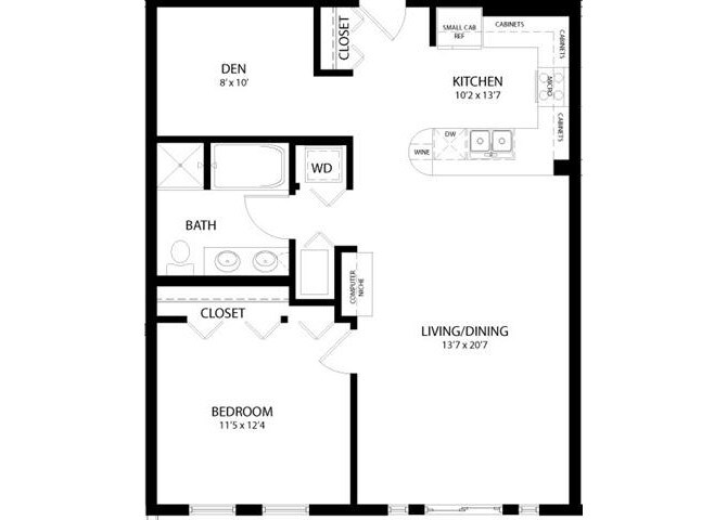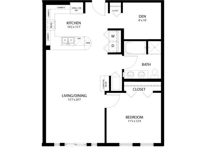 1 Bedroom C - Floorplan 2 Apartment Unit: 410Apartment Model: 1 Bedroom C$3,0981 Bedroom, 1 Bath, 850 sq ftAvailable Now1 Bedroom Den