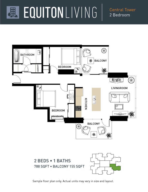 1 Bedroom - Floorplan 10 2 Bedrooms