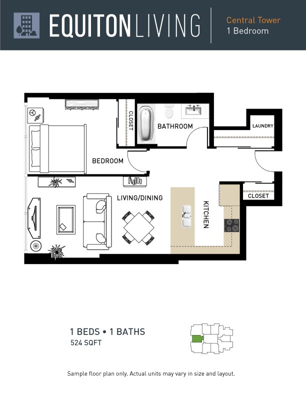 1 Bed, 1 Bath, 524 sq ftAvailable NowModel Gallery