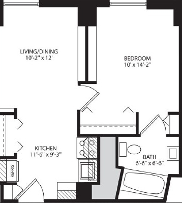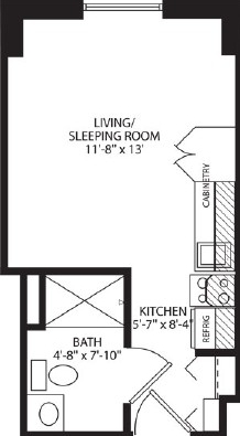 Studio, 1 Bath, 243 sq ftAvailability Details