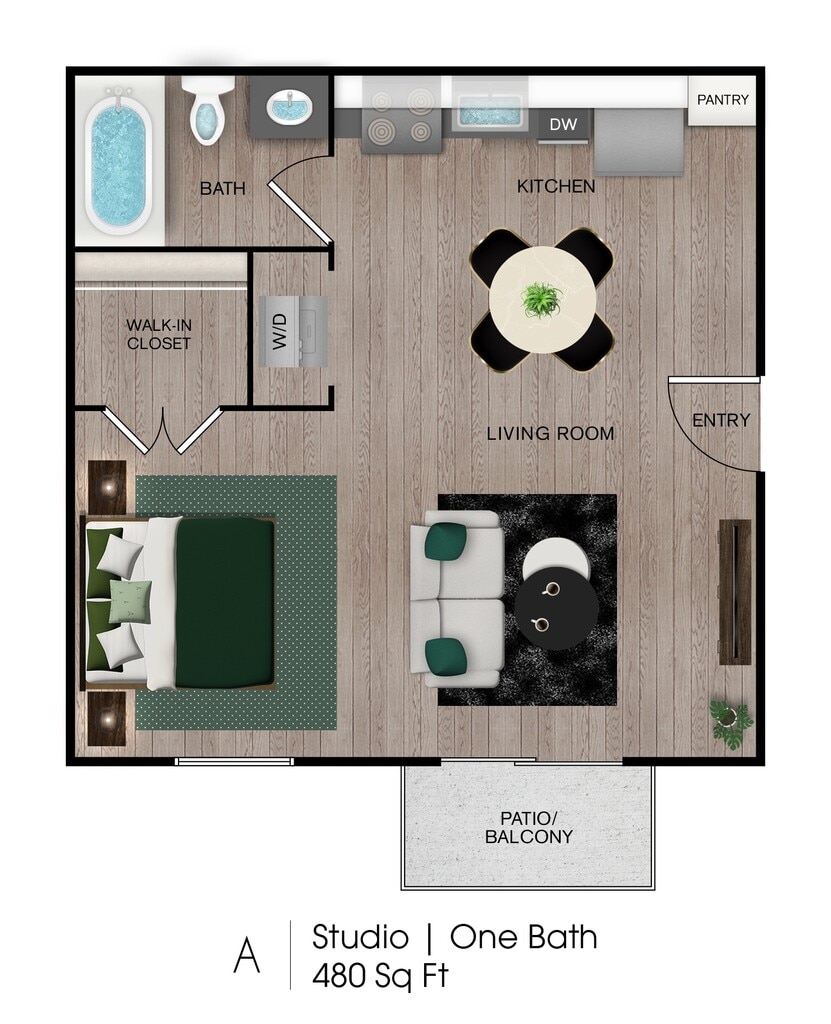 Studio, 1 Bath, 480 sq ftAvailable Dec 29Model Gallery