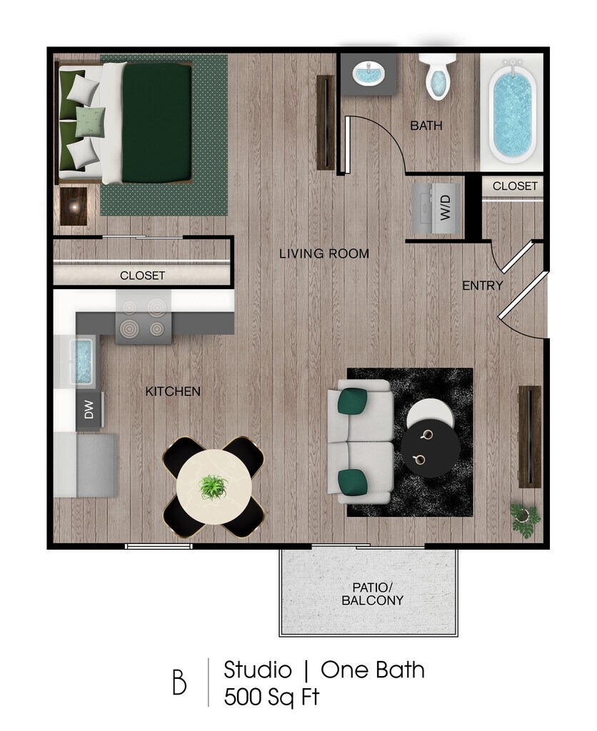 B - Floorplan 1 Apartment Unit: 417Apartment Model: B$989Studio, 1 Bath, 500 sq ftAvailable NowApartment Unit: 414Apartment Model: B$984Studio, 1 Bath, 500 sq ftAvailable NowApartment Unit: 091Apartment Model: B$1,004Studio, 1 Bath, 500 sq ftAvailable December 6, 2025Floorplan A