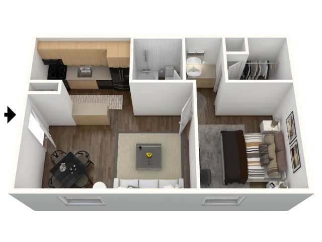 1 Bed, 1 Bath, 608 sq ftAvailable NowModel Gallery