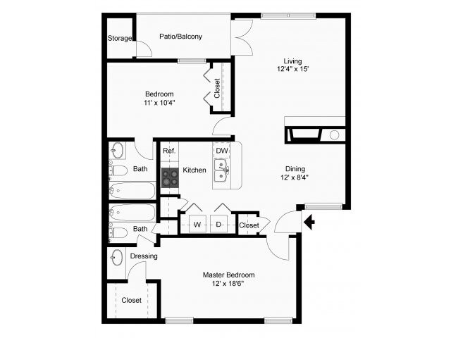 Apartment Model: A31 Bedroom, 1 Bath, 744 sq ftAvailable NowFloorplansPhotos![]()