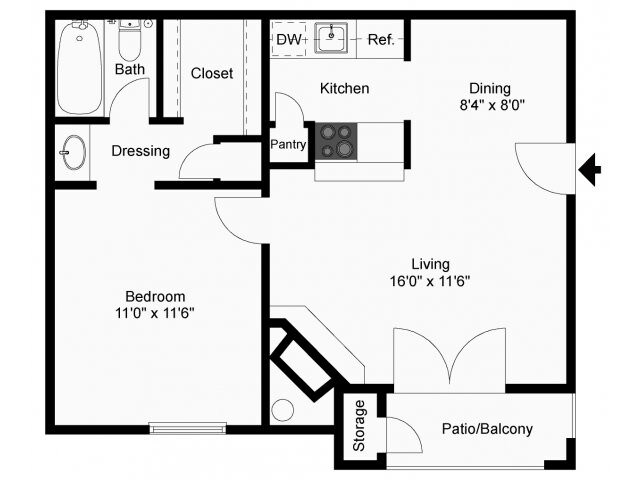 Apartment Model: A11 Bedroom, 1 Bath, 500 sq ftAvailable Now![]()