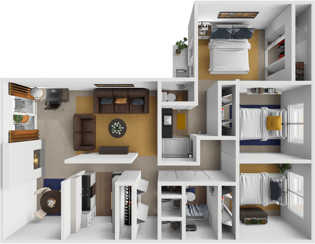 Rockbrook I - Floorplan 10 Apartment Unit: 4-133BApartment Model: Rockbrook I$1,1552 Bedroom, 2 Bath, 1200 sq ftAvailable December 19, 20253 Bedrooms