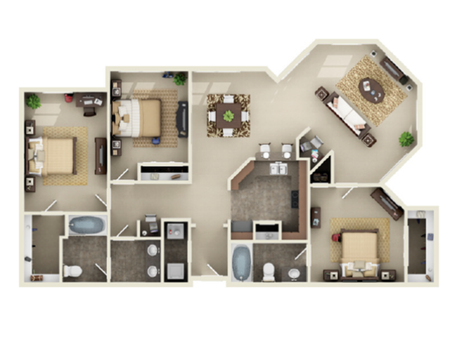 3 Beds, 2 Baths, 1398 sq ftAvailable NowCheapest 3 BedroomThis is the cheapest 3 Bedroom at this PropertyModel Gallery
