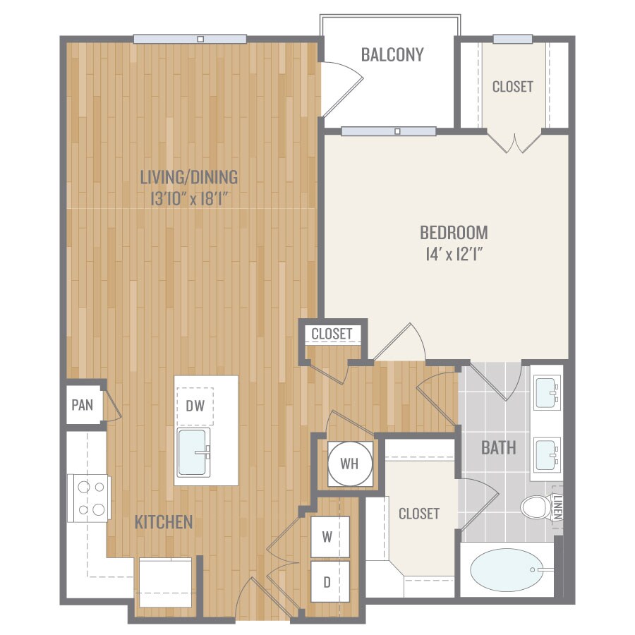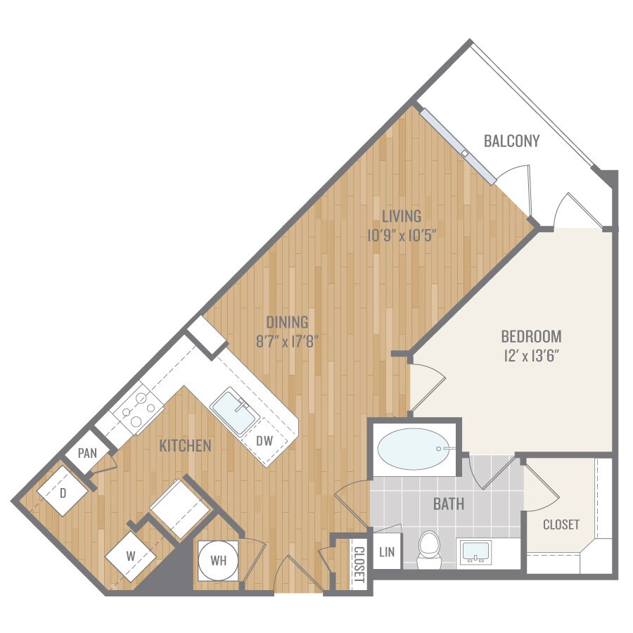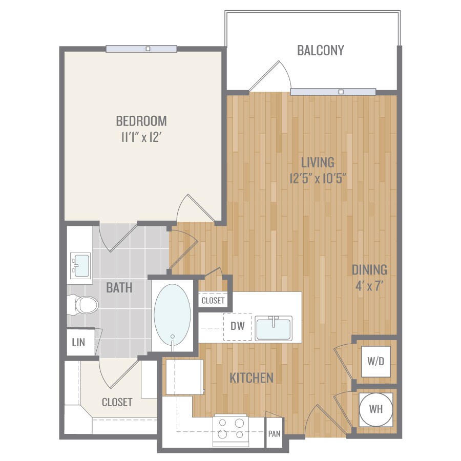 Apartment Model: A1From $1,2791 Bedroom, 1 Bath, 545 sq ftAvailable Now![]()