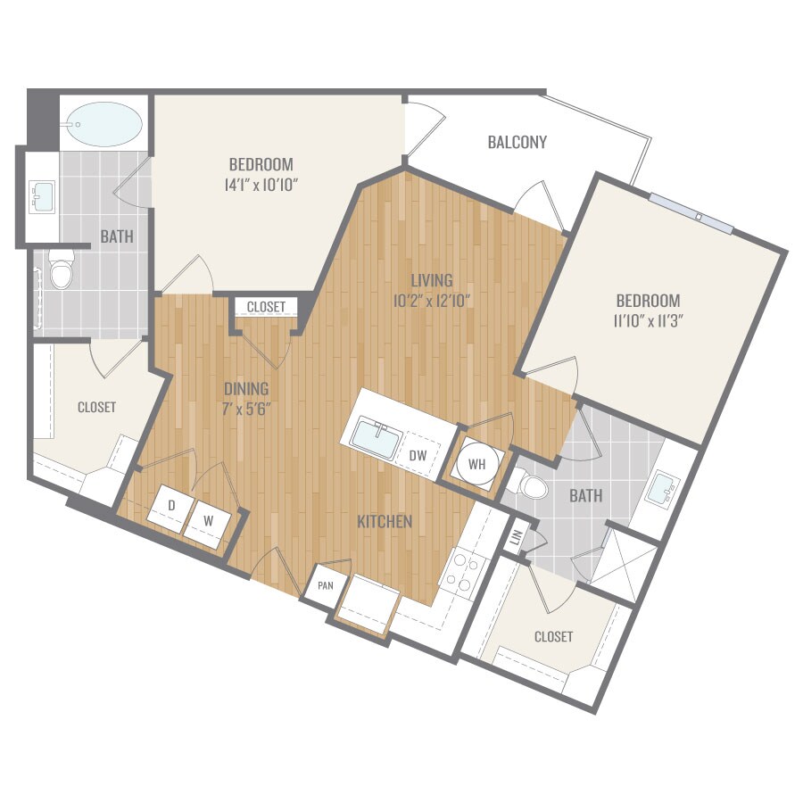 1 Bed, 1 Bath, 614 sq ftAvailable NowModel Gallery