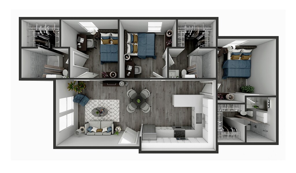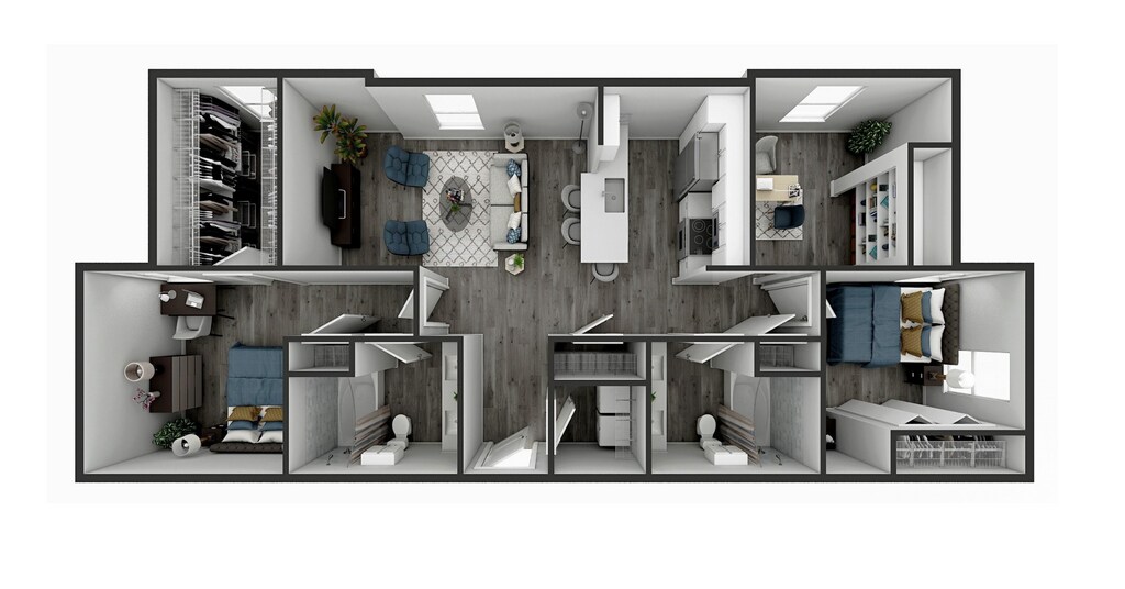 Experience elevated living in our unique 2-bedroom, 3-bathroom plus den apartments at Centric on 34th. This spacious layout offers the convenience of an additional bathroom and a versatile den space, ideal for a home office, guest room, or extra living area. Featuring modern interiors, open-concept living, and a prime Gainesville location, this floor plan is perfect for those seeking both space and functionality.
