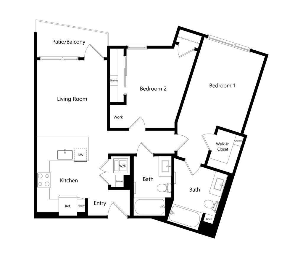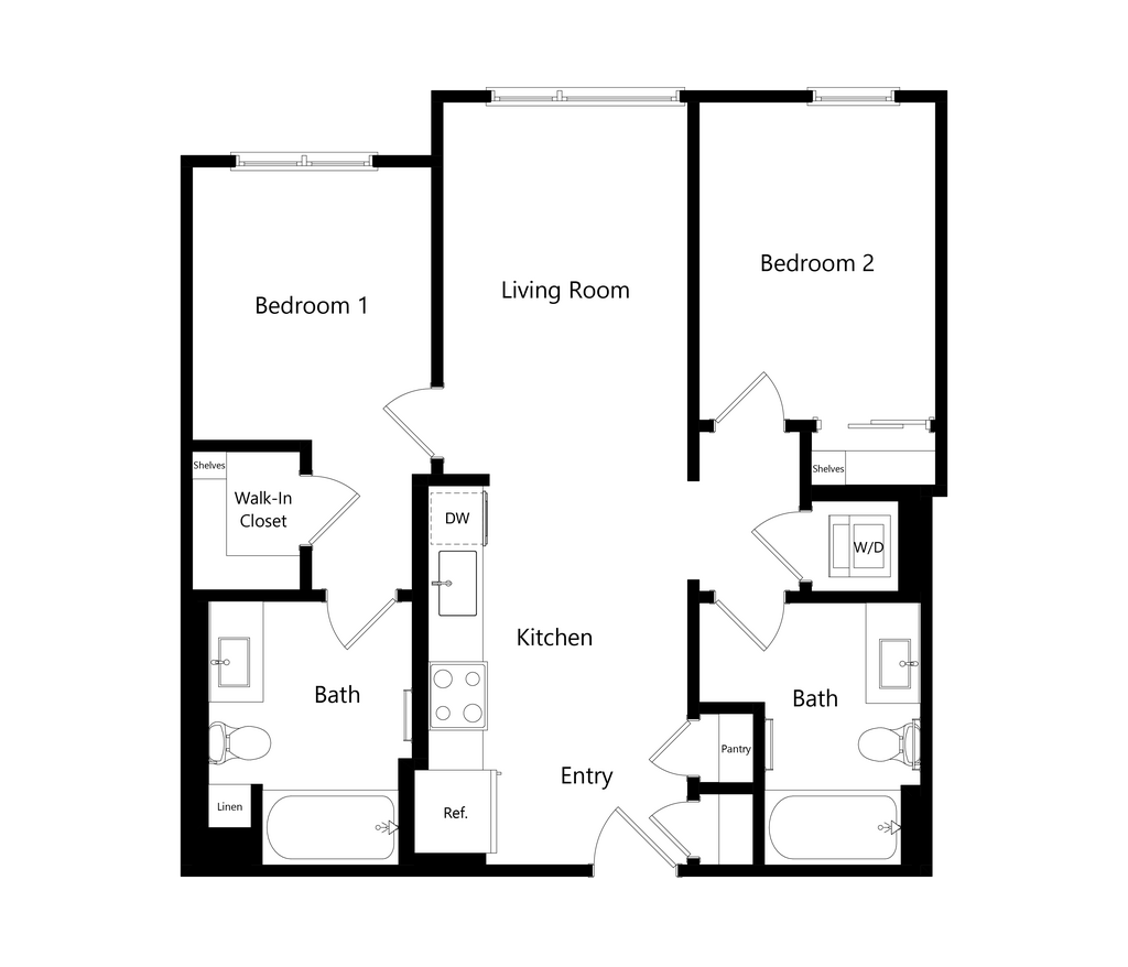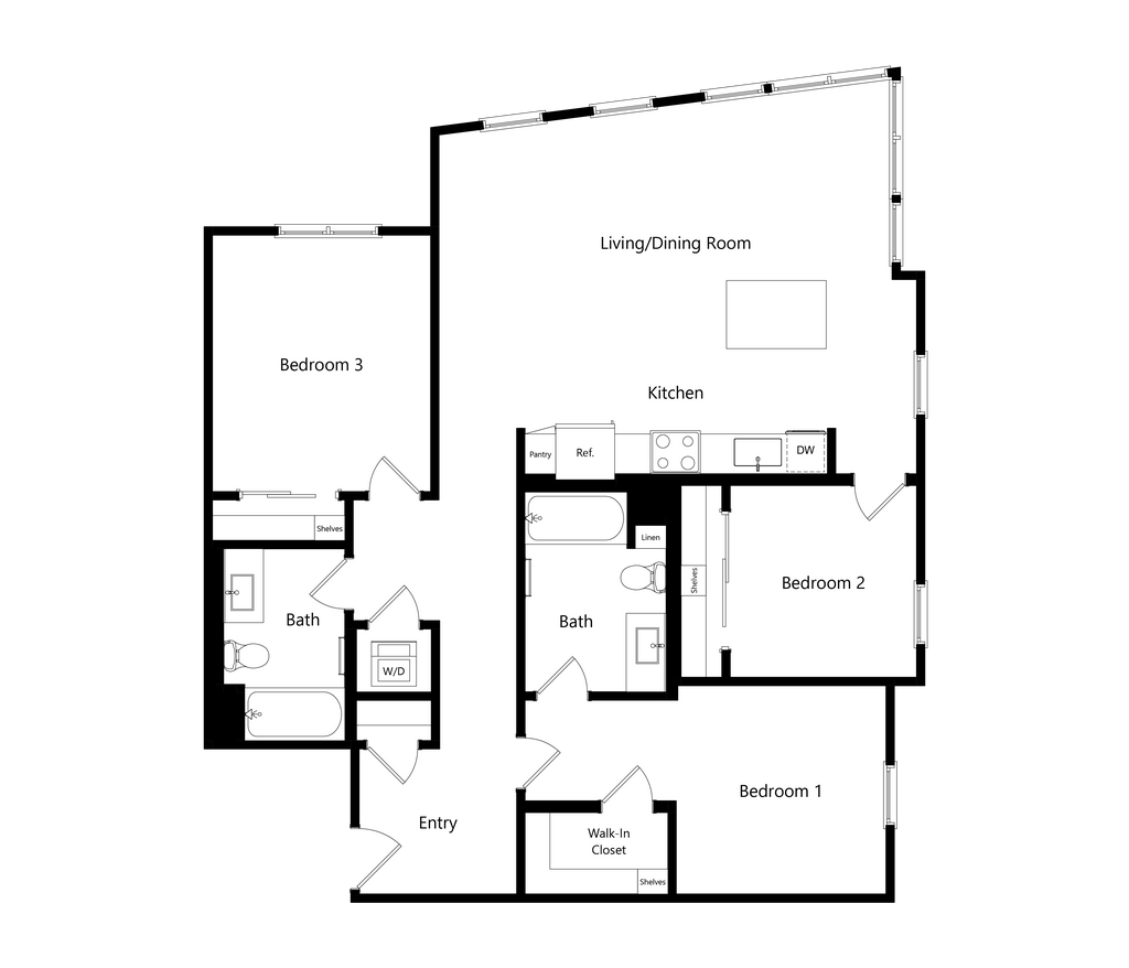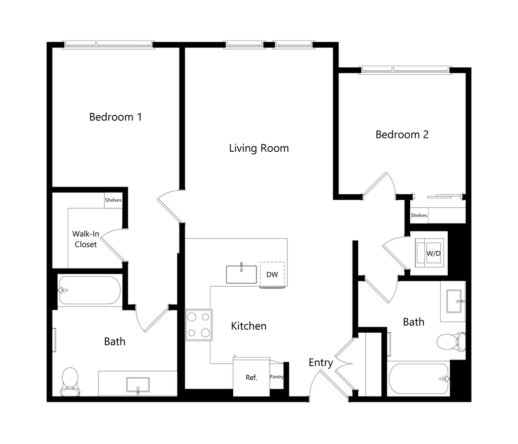 1 Bed, 1 Bath, 735-768 sq ftAvailable NowLargest 1 BedroomThis is the largest 1 Bedroom at this PropertyModel Gallery