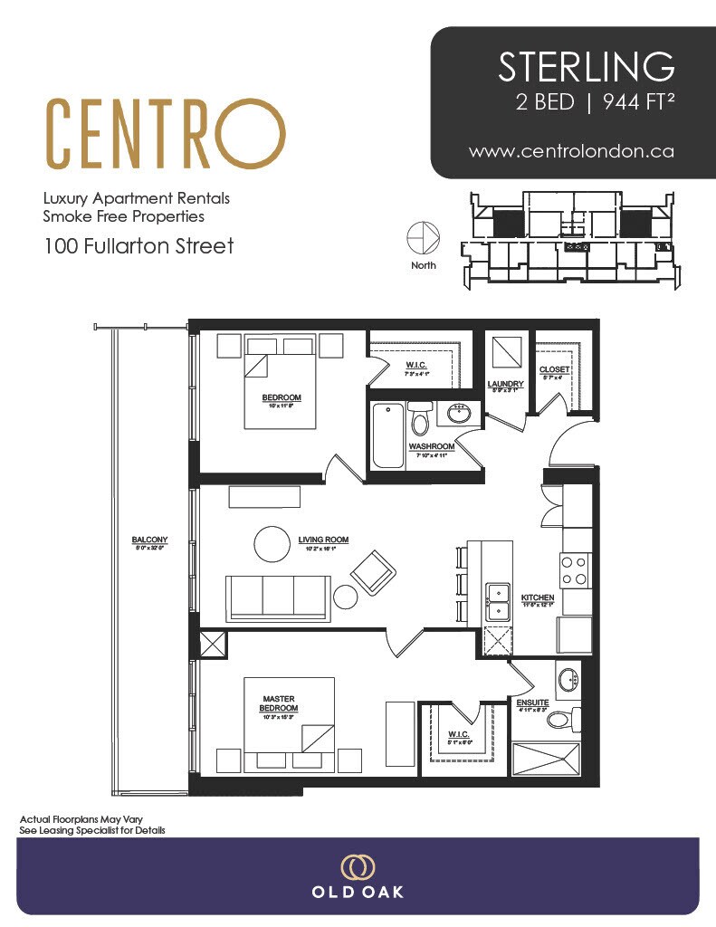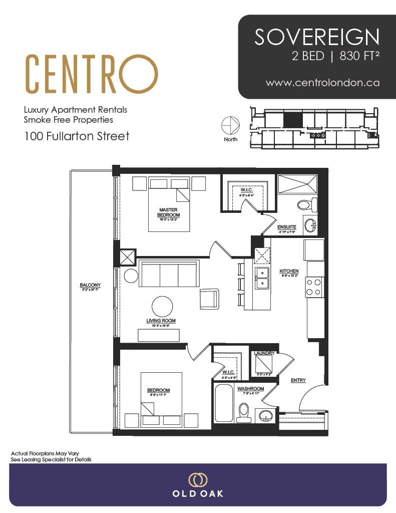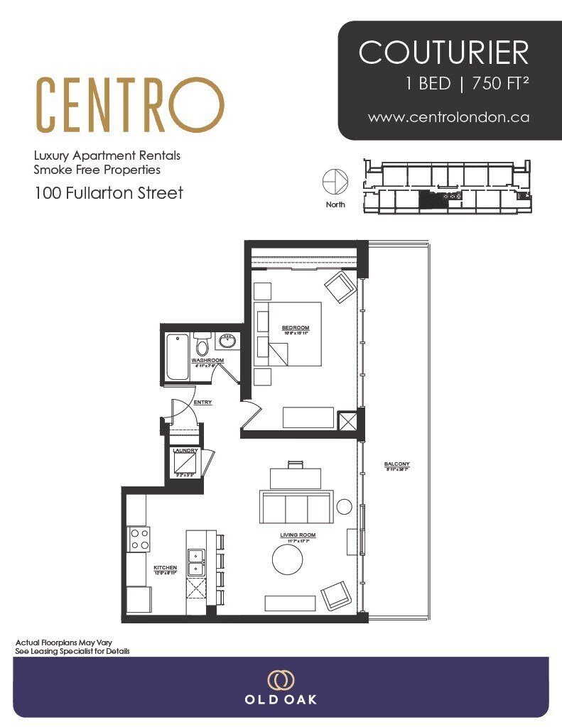 Centro offers 1 to 3 Bedroom apartments starting from $1,632 and having 484–1,606 sq ft. Here is the current pricing and availability: