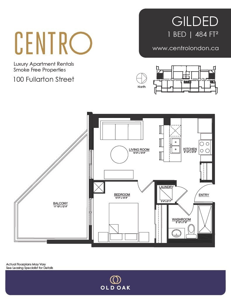 Apartment Model: GildedFrom $1,6321 Bedroom, 1 Bath, 484 sq ftAvailable Now![]()