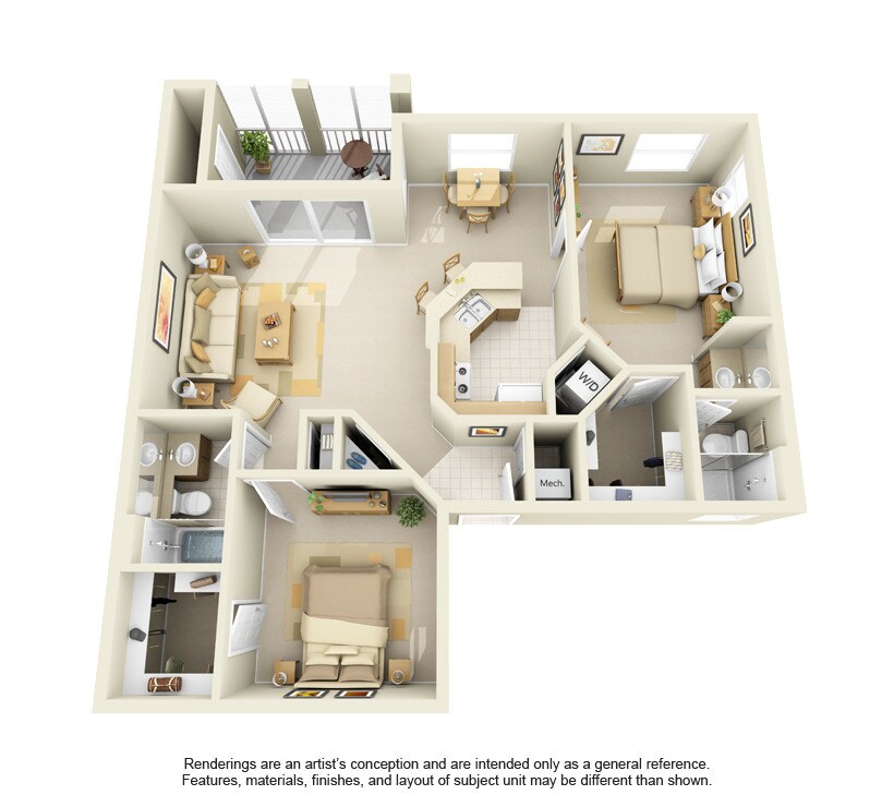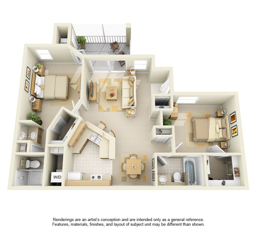 2 Beds, 2 Baths, 1125 sq ftAvailable NowModel Gallery