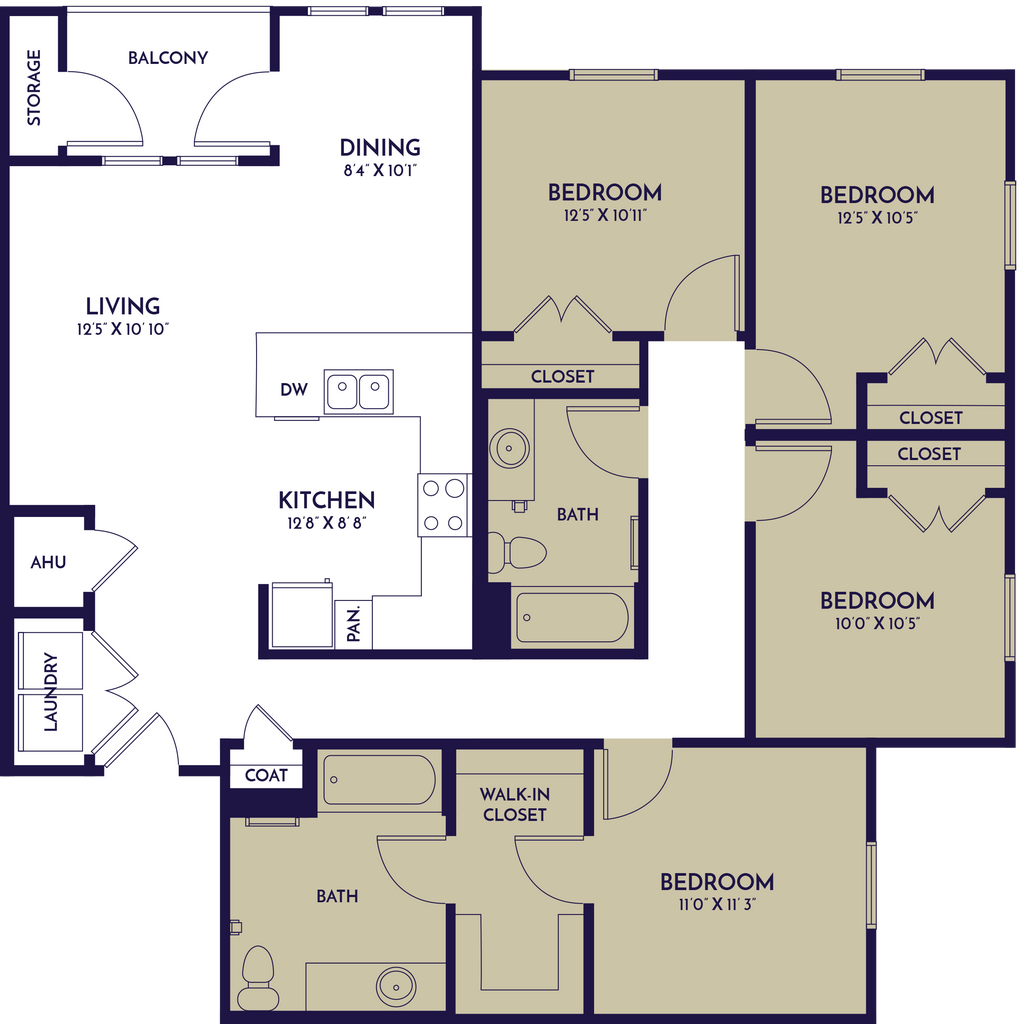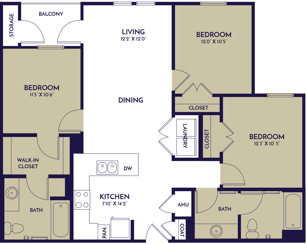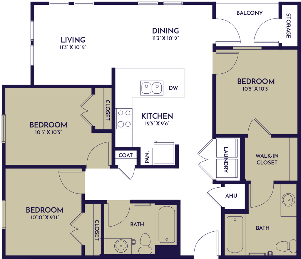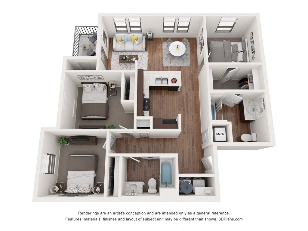 3 Beds, 2 Baths, 1116 sq ftLargest 3 BedroomThis is the largest 3 Bedroom at this PropertyModel Gallery