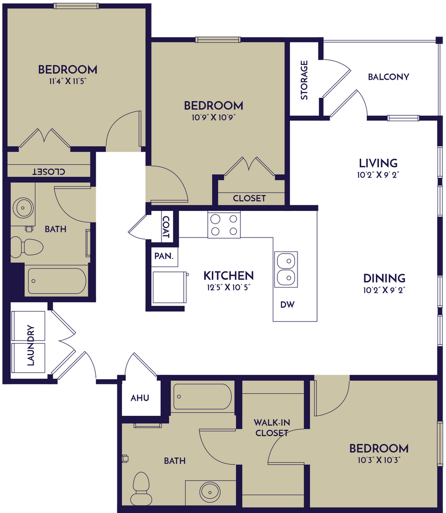 Availability Date Unit Sq Ft Unavailable C3 1116 sq ft Apartment Model: C33 Bedroom, 2 Bath, 1116 sq ftUnavailable![]()
