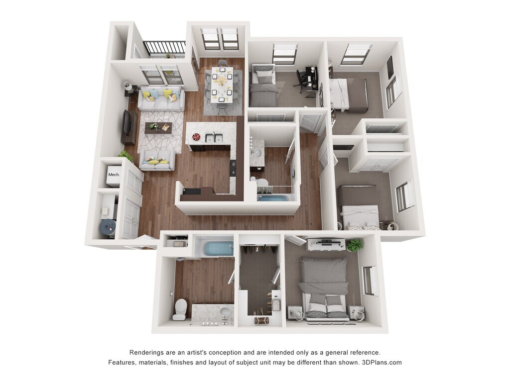 4 Beds, 2 Baths, 1378 sq ftModel Gallery