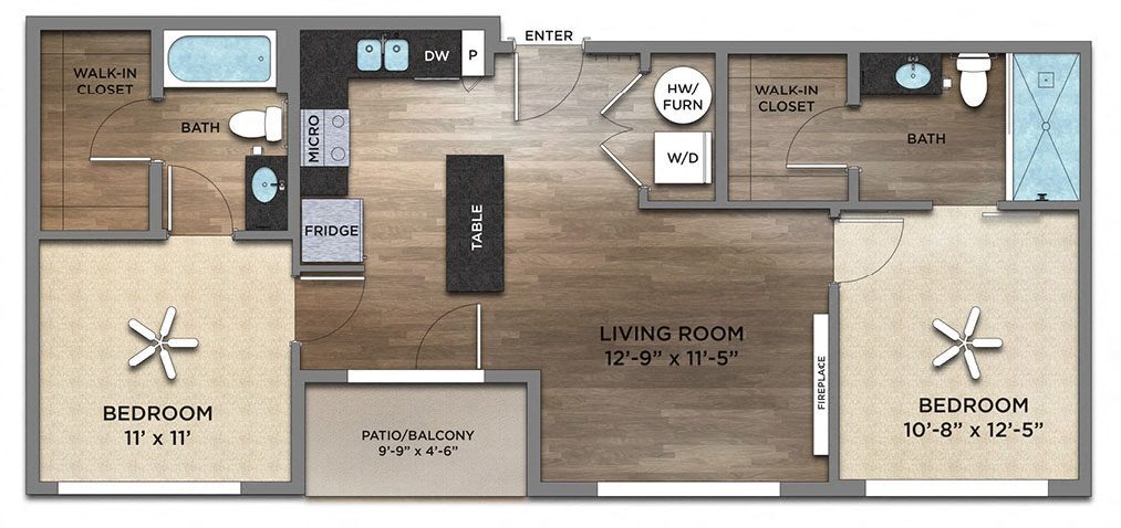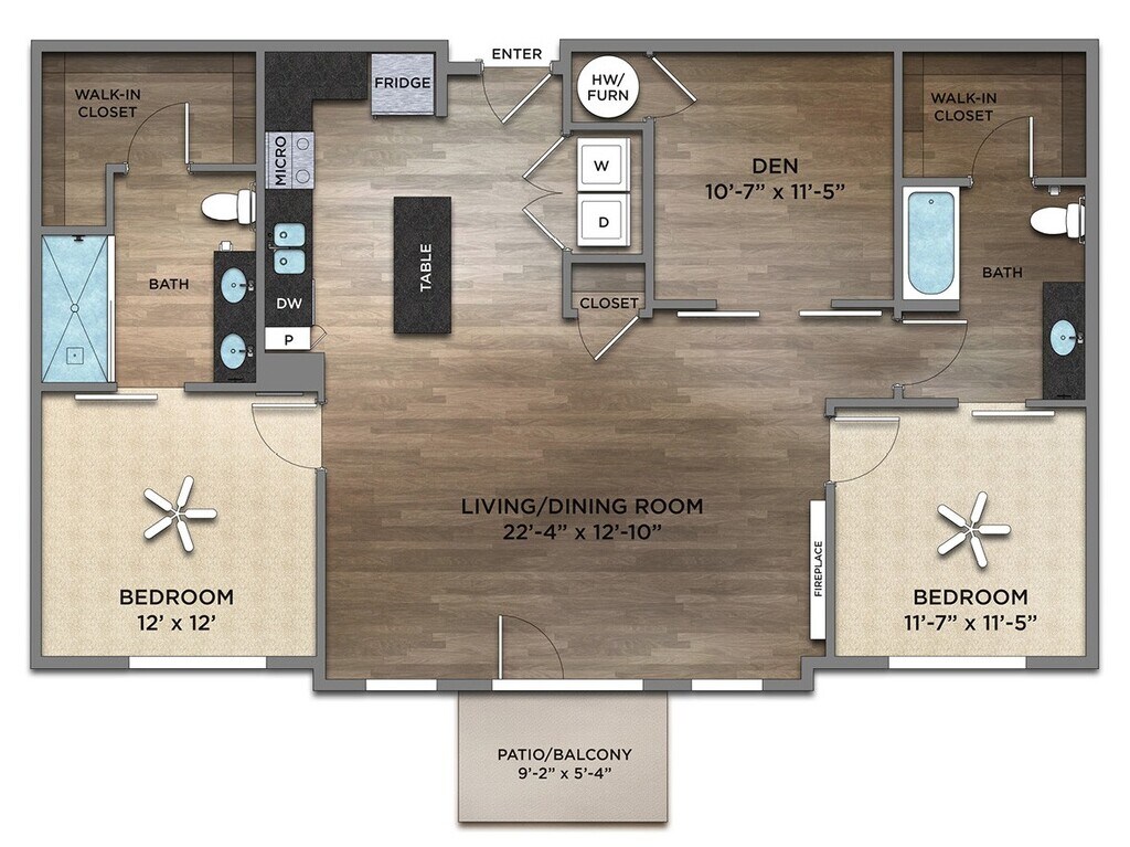 1 Bed, 2 Baths, 971 sq ftAvailable NowLargest 1 BedroomThis is the largest 1 Bedroom at this PropertyModel Gallery