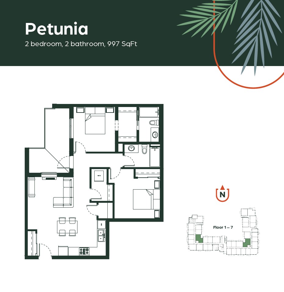Apartment Model: Petunia2 Bedroom, 2 Bath, 997 sq ftUnavailable![]()