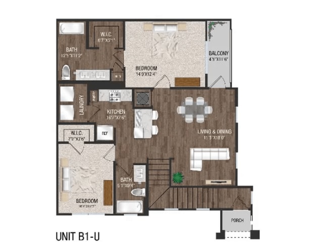 1 Bed, 1 Bath, 757 sq ftModel Gallery