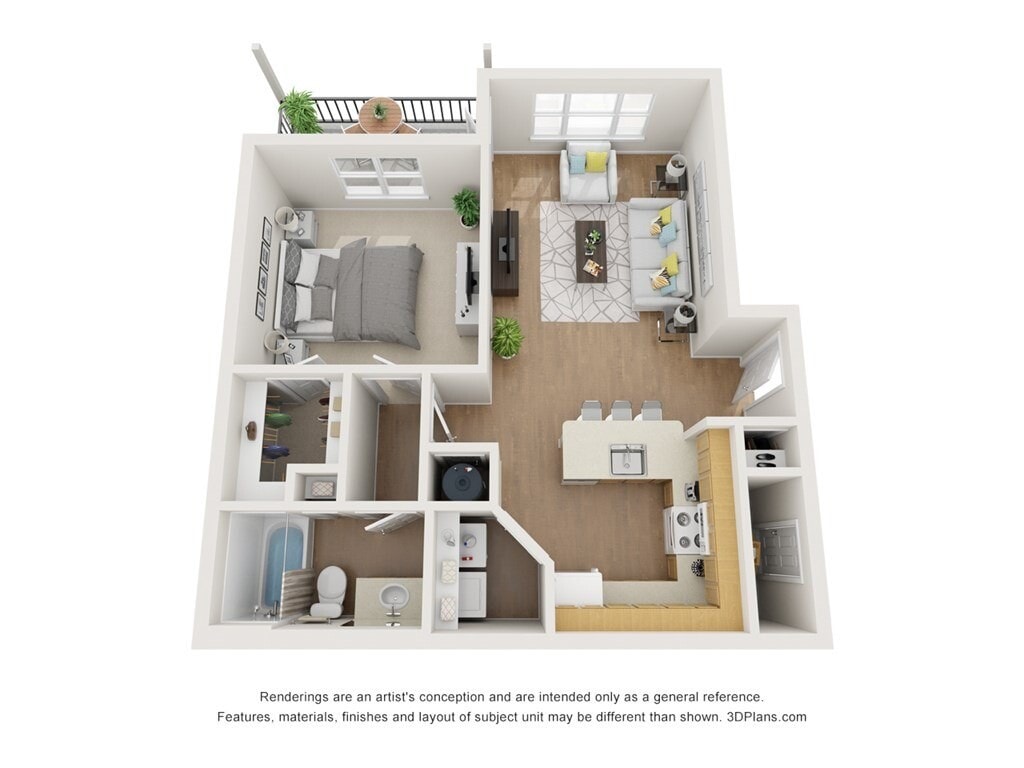 1 Bed, 1 Bath, 705 sq ftModel Gallery