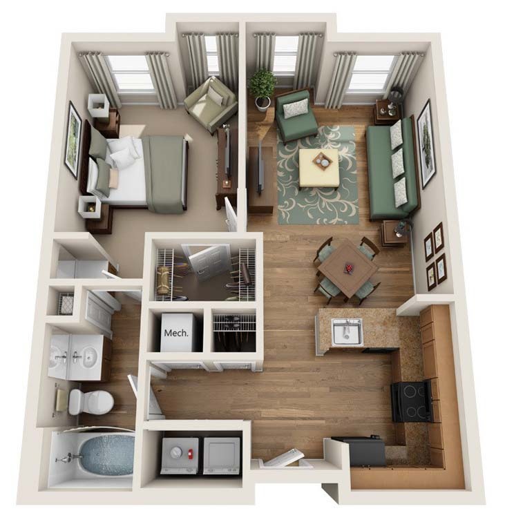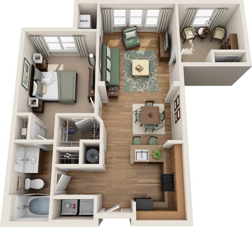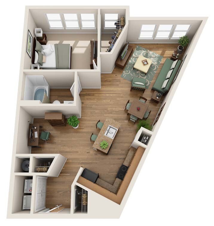 1 Bed, 1 Bath, 723 sq ftAvailable NowModel Gallery