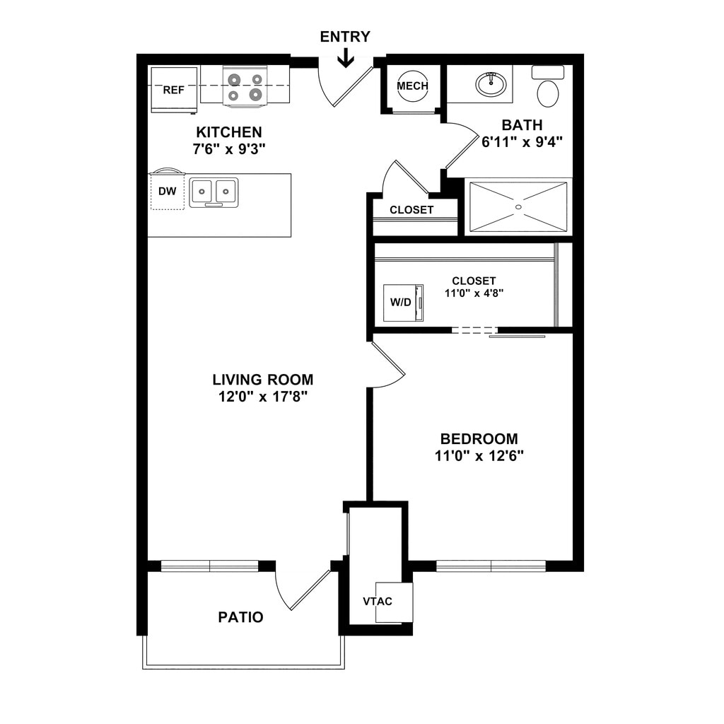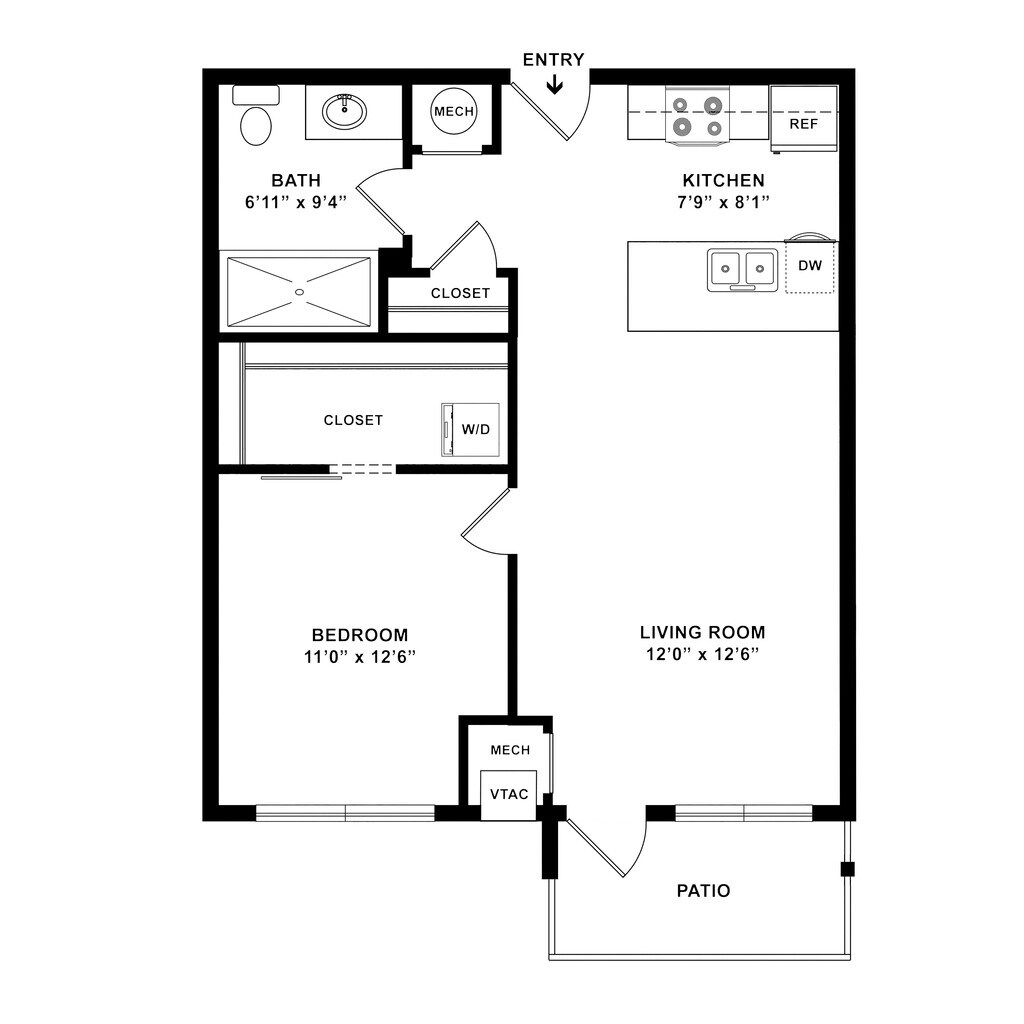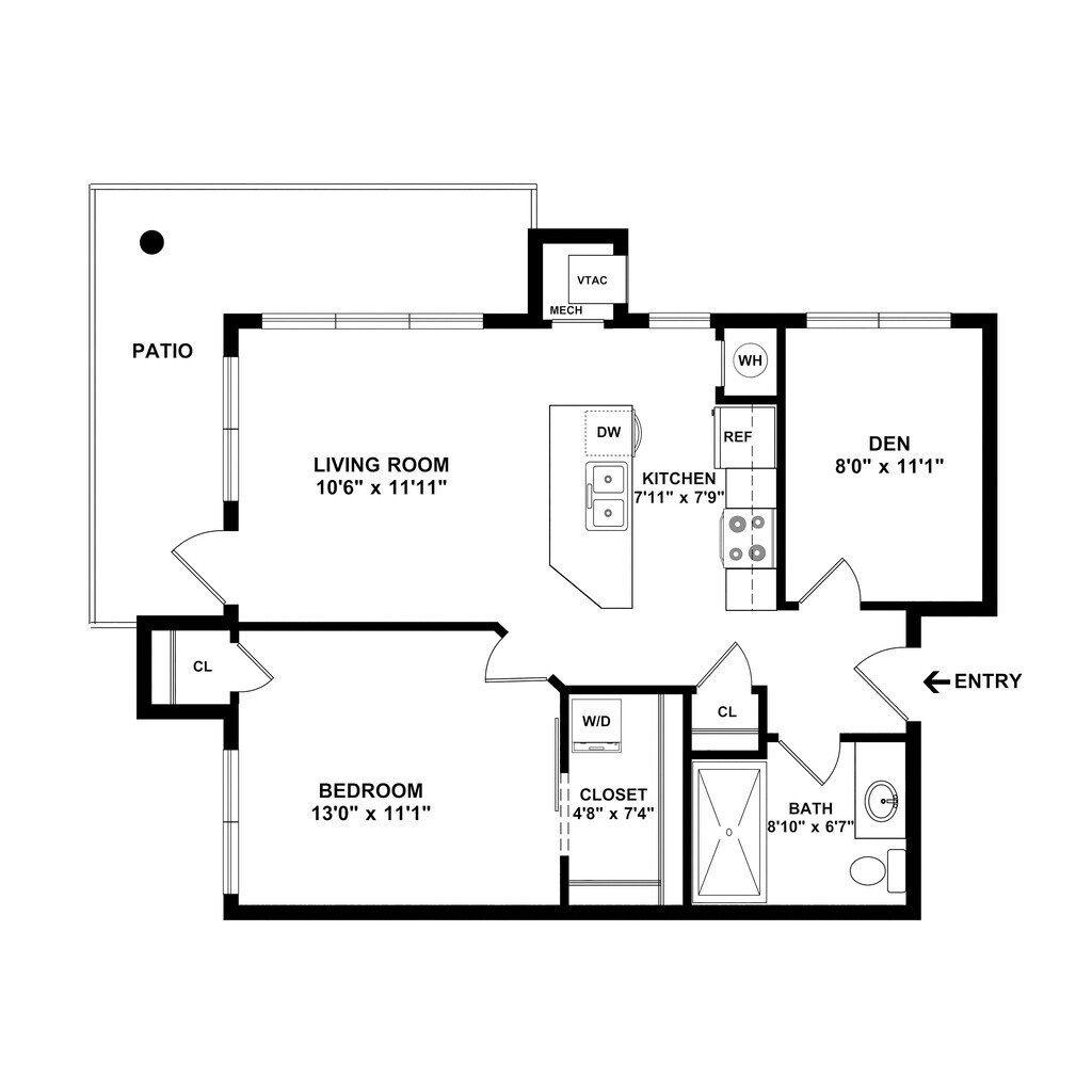 1 Bed, 1 Bath, 815 sq ftAvailable NowLargest 1 BedroomThis is the largest 1 Bedroom at this PropertyModel Gallery