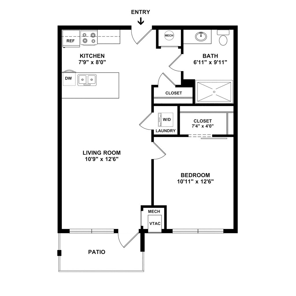 1 Bed, 1 Bath, 561 sq ftAvailable NowModel Gallery