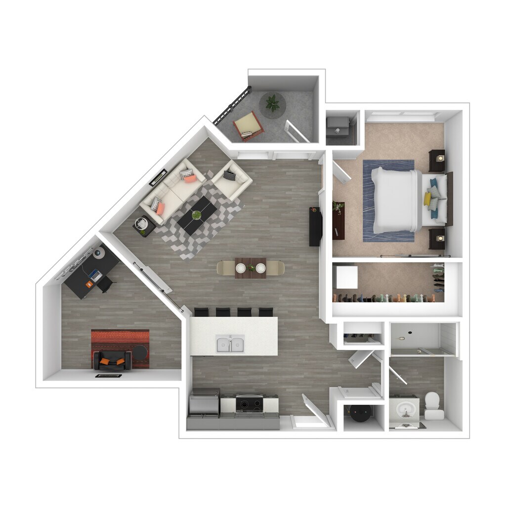 1 Bed, 1 Bath, 673 sq ftModel Gallery
