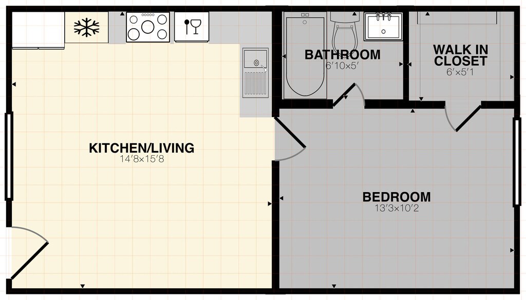 1 Bedroom, 1 Bathroom 500 SQFT
