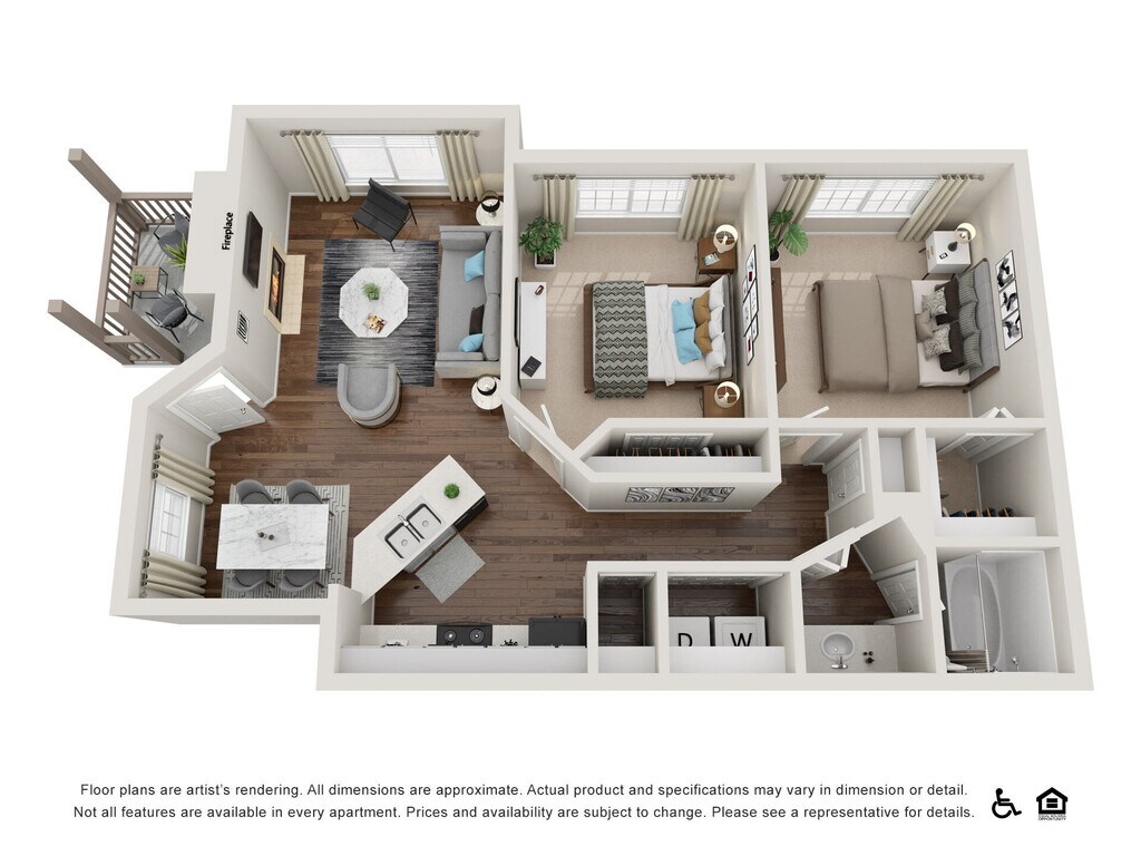 2x2 - Floorplan 1 Floor plans are artist's rendering. All dimensions are approximate. Actual product and specifications may vary in dimension or detail. Not all features are available in every rental home. Prices and availability are subject to change. Base rent is based on monthly frequency. Additional fees may apply, such as but not limited to package delivery, trash, water, amenities, etc. Deposits vary. Please see a representative for details.
