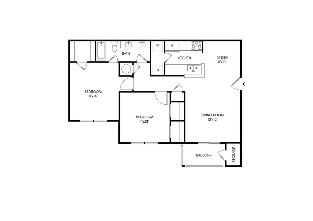 2 Beds, 1 Bath, 1033 sq ftAvailable NowModel Gallery